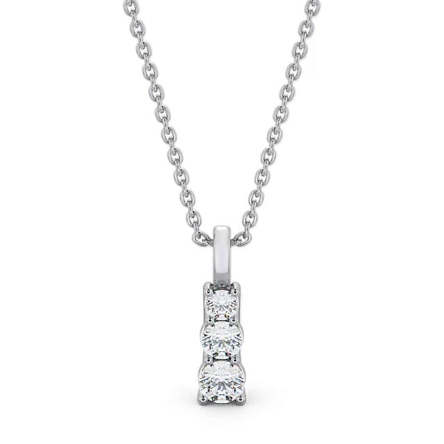 Meghan journey diamond pendant in 18K White Gold. Unique and exquisite, this journey pendant showcases three stunning round diamonds in a graduating design. This pendant is available in a range of metal and chain options with your choice of natural or lab grown diamonds. We offer a free design service for any customised changes that you may require.