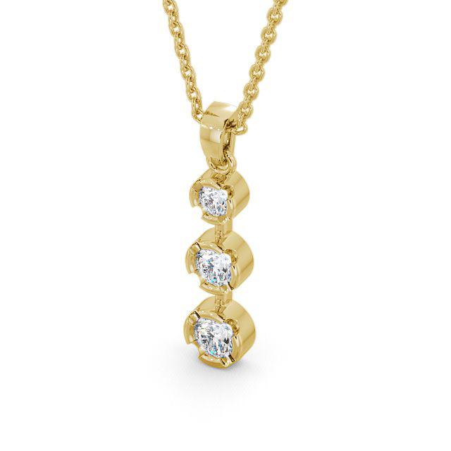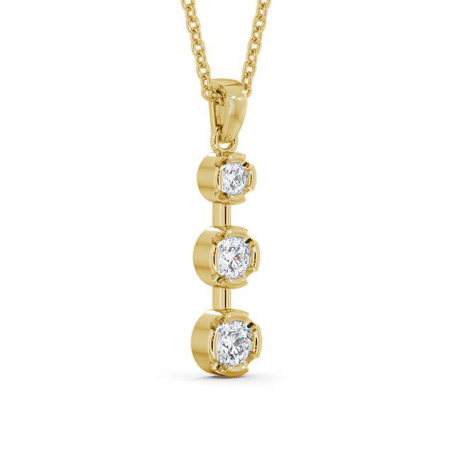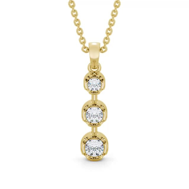 Braya journey diamond pendant in 18K Yellow Gold. This modern journey pendant showcases three bezel set graduated round diamonds bridged by polished bars. This pendant is available in a range of metal and chain options with your choice of natural or lab grown diamonds. We offer a free design service for any customised changes that you may require.