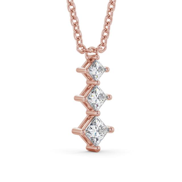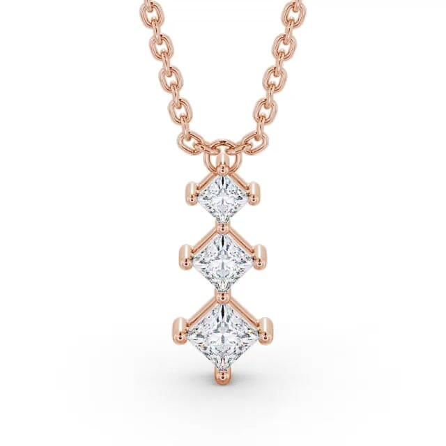 Kalaya drop diamond pendant in 18K Rose Gold. Chic and sophisticated, this journey pendant features three princess shaped diamonds prong set in a graduating design. This pendant is available in a range of metal and chain options with your choice of natural or lab grown diamonds. We offer a free design service for any customised changes that you may require.