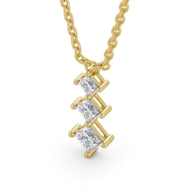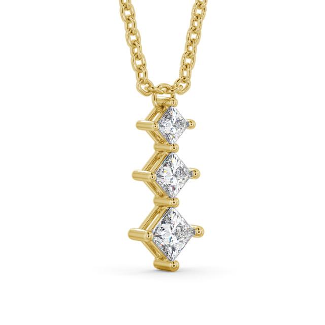 Kalaya drop diamond pendant in 9K Yellow Gold. Chic and sophisticated, this journey pendant features three princess shaped diamonds prong set in a graduating design. This pendant is available in a range of metal and chain options with your choice of natural or lab grown diamonds. We offer a free design service for any customised changes that you may require.