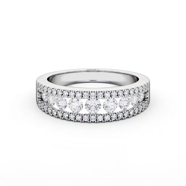 Naylani ladies diamond wedding ring in 18K White Gold. Brimming with sparkle, this wedding ring displays three rows of shimmering round diamonds with a total weight of 0.77 Carat. This ring is available in a range of widths and metal options with your choice of natural or lab grown diamonds. We offer a free design service for any customised changes that you may require.