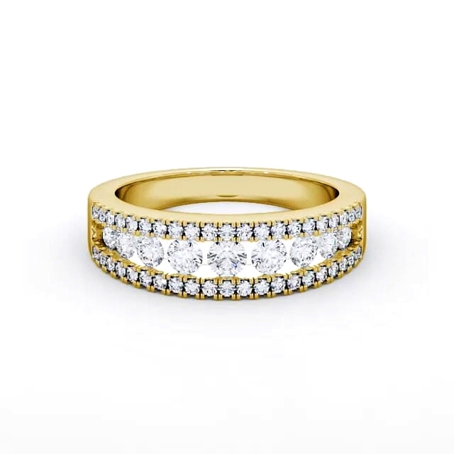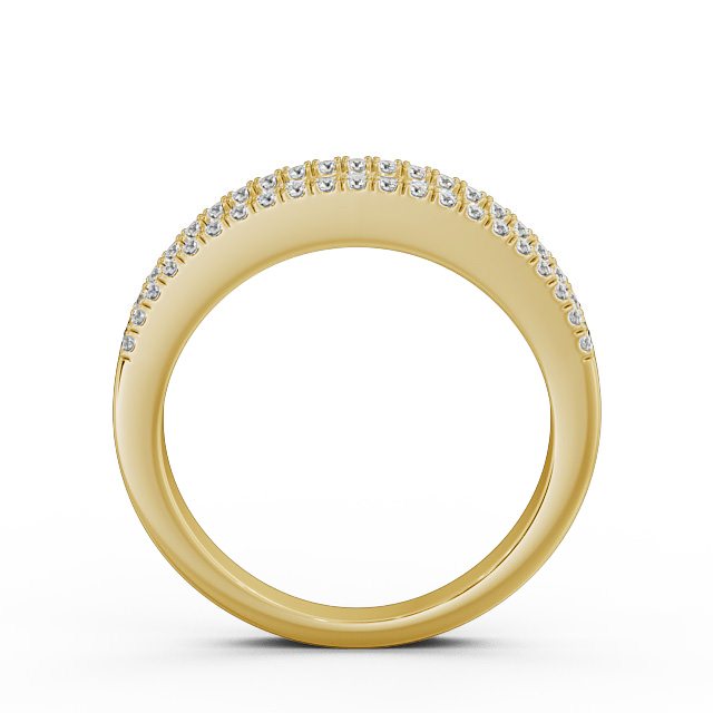 Naylani ladies diamond wedding ring in 18K Yellow Gold. Brimming with sparkle, this wedding ring displays three rows of shimmering round diamonds with a total weight of 0.77 Carat. This ring is available in a range of widths and metal options with your choice of natural or lab grown diamonds. We offer a free design service for any customised changes that you may require.