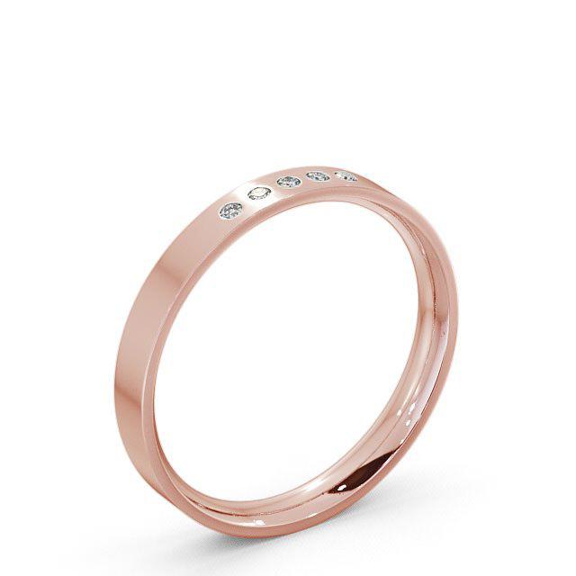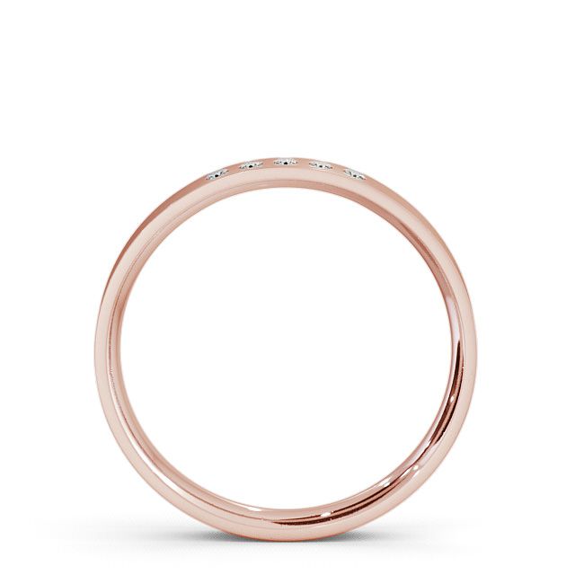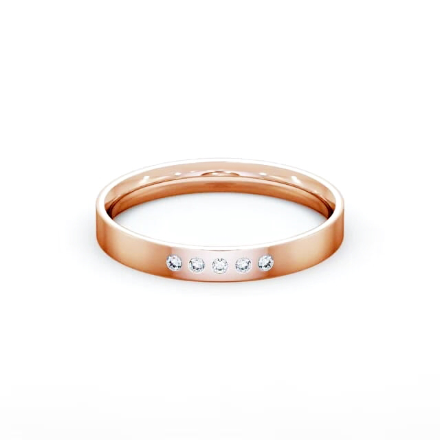 Flat Court Five Stone ladies diamond wedding ring in 18K Rose Gold. A classic style, this highly polished flat wedding ring features five flush set round shaped diamonds. Inside surface of the band is perfectly rounded off to offer comfort fit. This ring is available in a range of widths, depths, and metal options. We offer a free design service for any customised changes that you may require.