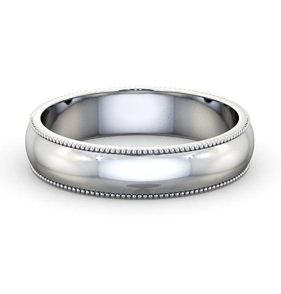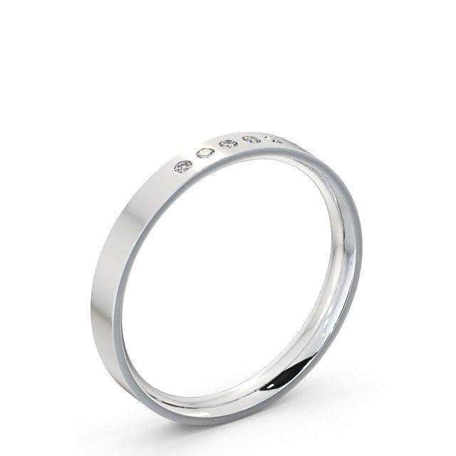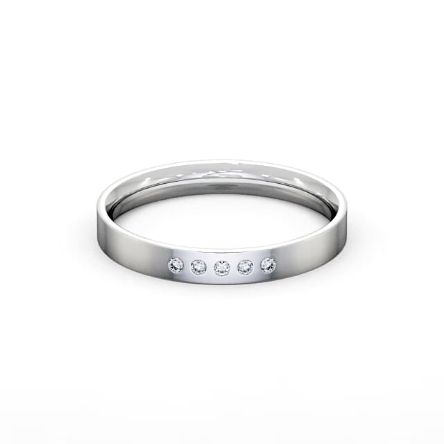 Flat Court Five Stone ladies diamond wedding ring in 18K White Gold. A classic style, this highly polished flat wedding ring features five flush set round shaped diamonds. Inside surface of the band is perfectly rounded off to offer comfort fit. This ring is available in a range of widths, depths, and metal options. We offer a free design service for any customised changes that you may require.