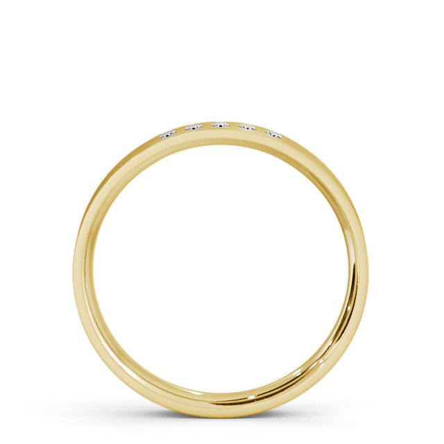 Flat Court Five Stone ladies diamond wedding ring in 18K Yellow Gold. A classic style, this highly polished flat wedding ring features five flush set round shaped diamonds. Inside surface of the band is perfectly rounded off to offer comfort fit. This ring is available in a range of widths, depths, and metal options. We offer a free design service for any customised changes that you may require.