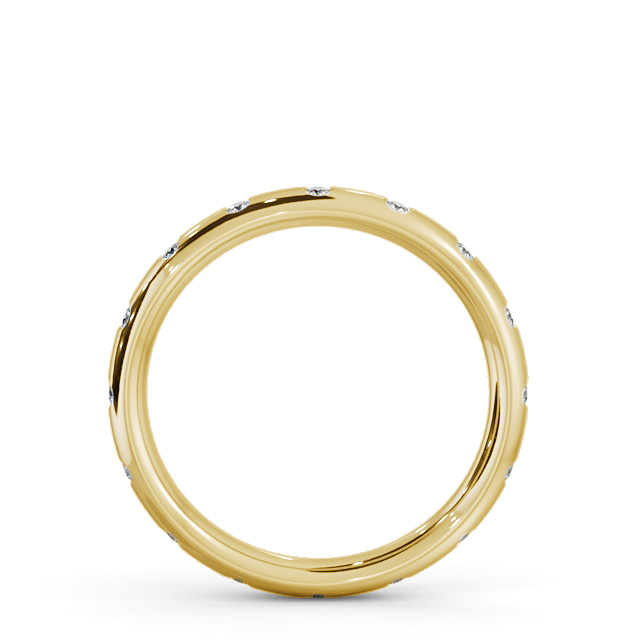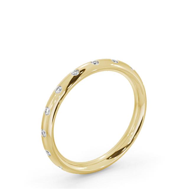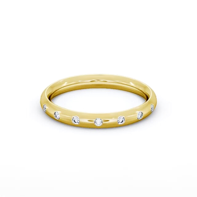 Skyler ladies diamond wedding ring in 18K Yellow Gold. Elegant with a bit of magic, this wedding ring features petite round diamonds scattered throughout the smooth and polished traditional court style band for comfortable wear. This ring is available in a range of widths, depths, and metal options. We offer a free design service for any customised changes that you may require.