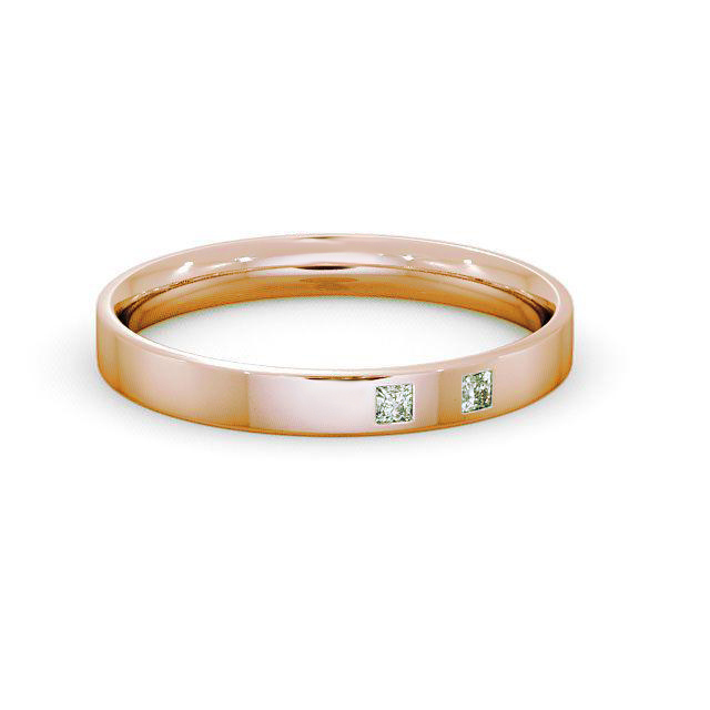 Ladies Two Princess Diamonds Flat Court Wedding Ring 9K Rose Gold | Princess Two Stone