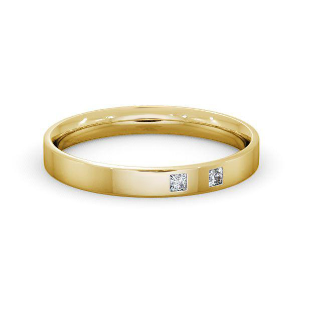 Ladies Two Princess Diamonds Flat Court Wedding Ring 9K Yellow Gold | Princess Two Stone
