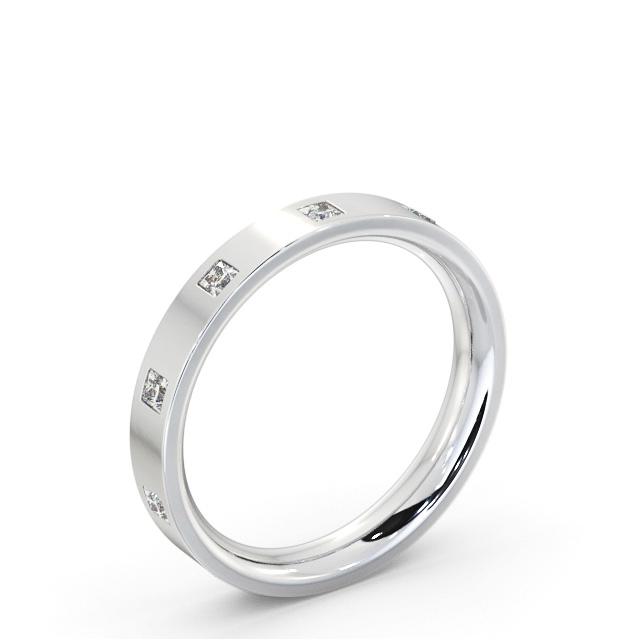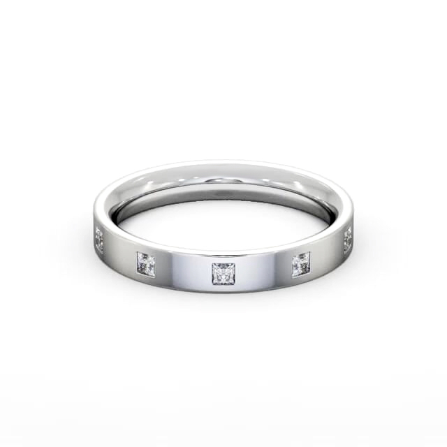 Avielle ladies diamond wedding ring in Palladium. This flat ladies wedding ring is adorned with beautiful princess shaped diamonds, evenly spaced out around highly polished band. This ring is available in a range of widths, depths, and metal options. We offer a free design service for any customised changes that you may require.