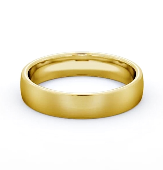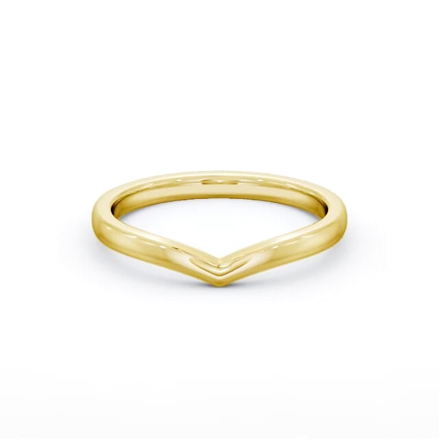 Brailey ladies plain wedding ring in 18K Yellow Gold. A smooth strand of this wedding ring creates a curved chevron style at the centre with flat inner surface. The ring is available in a range of widths, depths, and metal options. We offer a free design service for any customised changes that you may require.