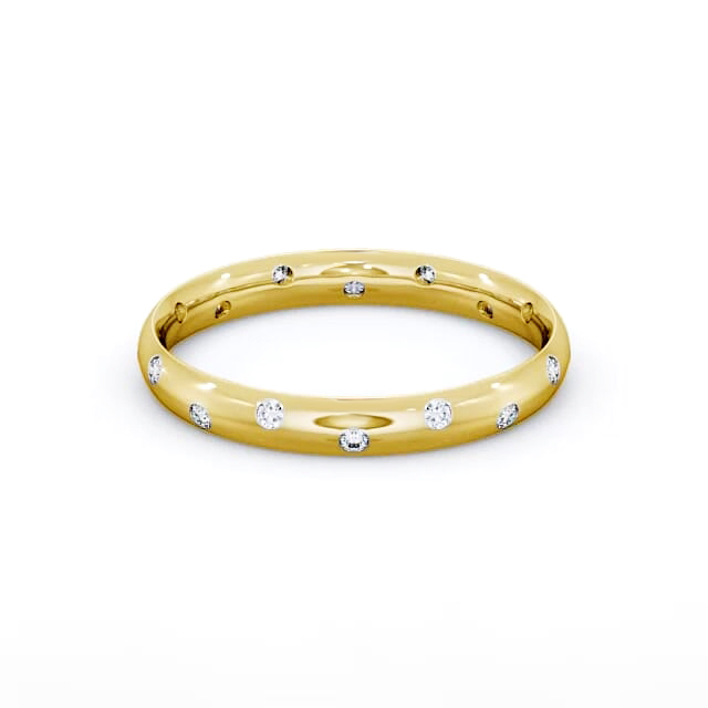 Ladies Round Diamond Offset Flush Setting Wedding Ring 18K Yellow Gold | Sariya