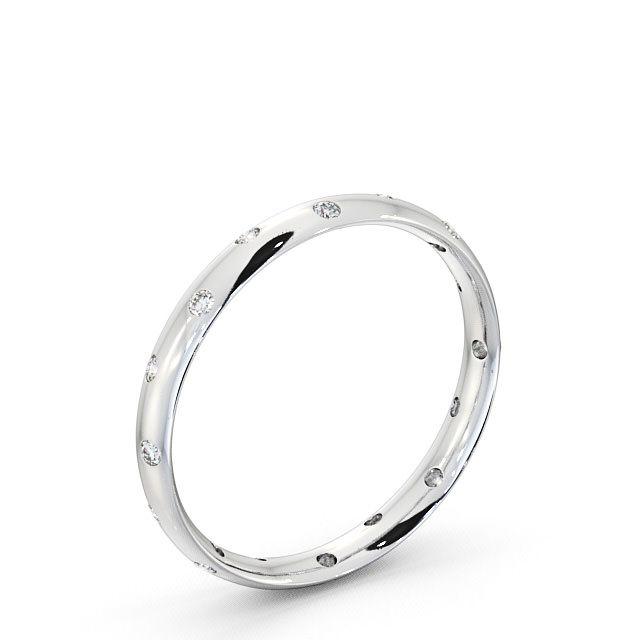 Ladies Round Diamond Offset Flush Setting Wedding Ring 9K White Gold | Sariya