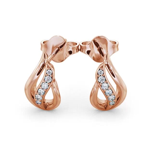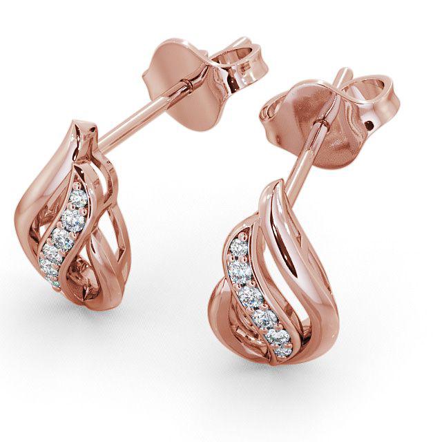 Emrie diamond 0.12 Carat earrings in 18K Rose Gold. Perfectly petite, these diamond earrings showcases shimmering round diamonds adorned leaf-shaped design. The total diamond weight is based on per pair. These earrings are available in a range of metal options and your choice of natural or lab grown diamonds. We offer a free design service for any customised changes that you may require.