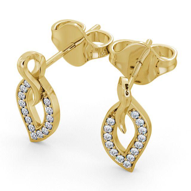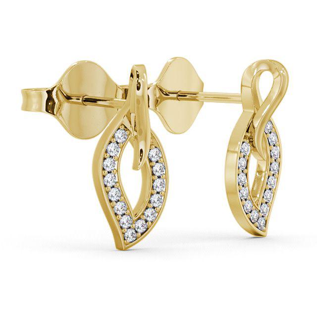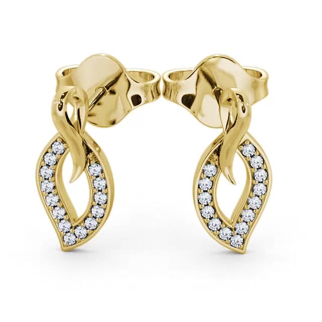Christal diamond earrings in 9K Yellow Gold. Sleek and stylish, these gorgeous earrings showcases an alluring leaf design set with sparkling round diamonds. The total diamond weight is based on per pair. These earrings are available in a range of metal options and your choice of natural or lab grown diamonds. We offer a free design service for any customised changes that you may require.