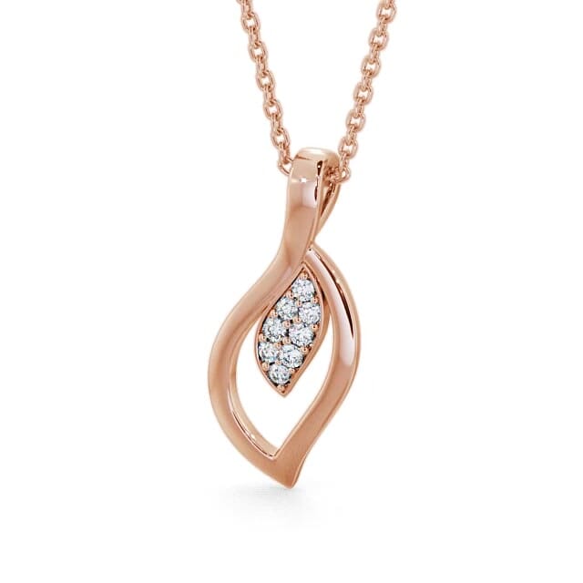 Meliah leaf shaped diamond pendant in 18K Rose Gold. Simple and minimalistic, this drop pendant features a beautiful leaf-shaped design accented with a cluster fo round diamonds. This pendant is available in a range of metal and chain options with your choice of natural or lab grown diamonds. We offer a free design service for any customised changes that you may require.