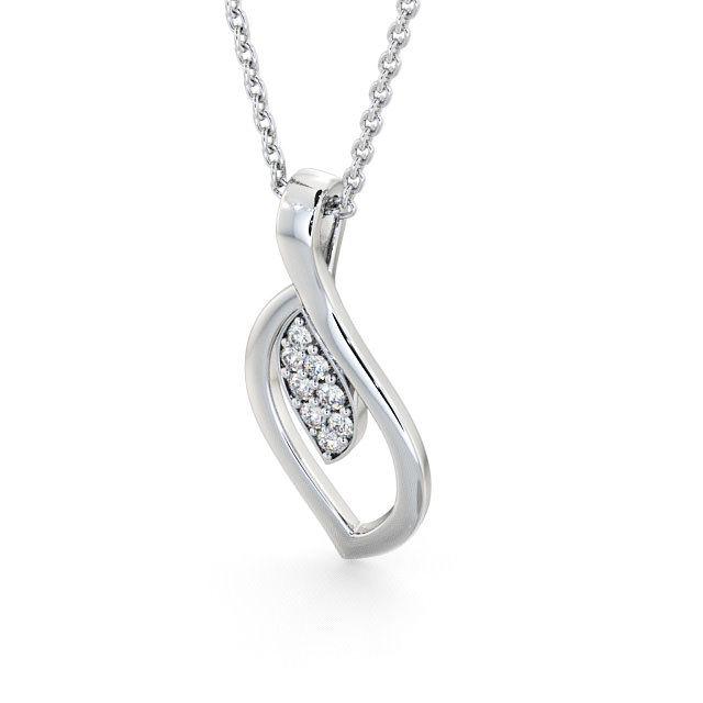 Leaf Shaped Round Diamond Pendant 9K White Gold | Meliah