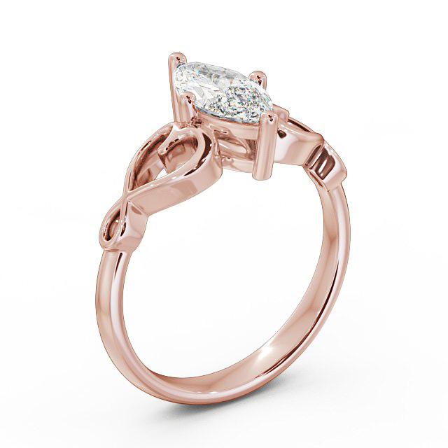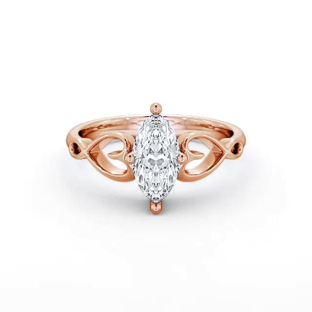 Eleora diamond engagement ring with a four claw 18K Rose Gold setting. This delightful engagement ring showcases an exquisite marquise-shaped diamond in a traditional four-prong setting along with open heart design shoulders. With a mid band width of 1.8mm, this ring is available in a range of metal options and your choice of natural or lab grown diamonds. We offer a free design service for any customised changes that you may require.