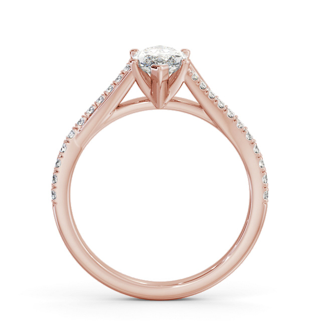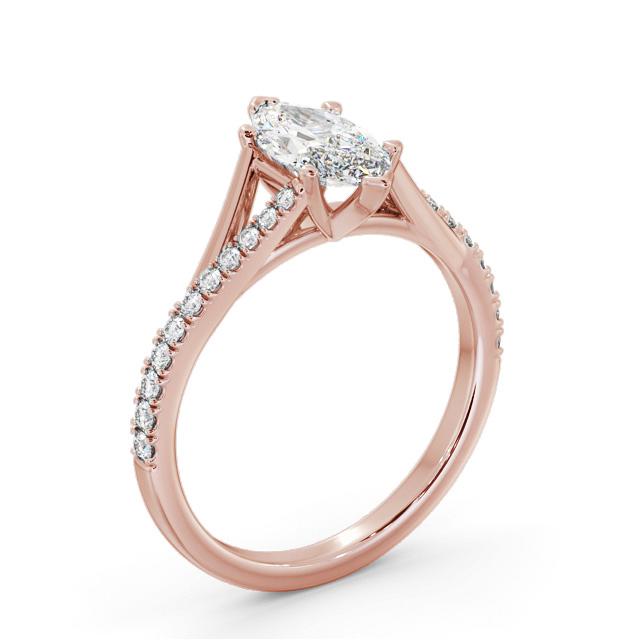 Mayar diamond engagement ring with a six claw 18K Rose Gold setting. Absolutely stunning, this ring is centralised with a marquise shaped diamond and a small round diamond accented band which splits off towards the centre for a charming appeal. Total diamond side stones weigh approximately 0.22ct with Clarity VS1 and Colour F. This ring is available in a range of metal options and your choice of natural or lab grown diamonds. We offer a free design service for any customised changes that you may require.
