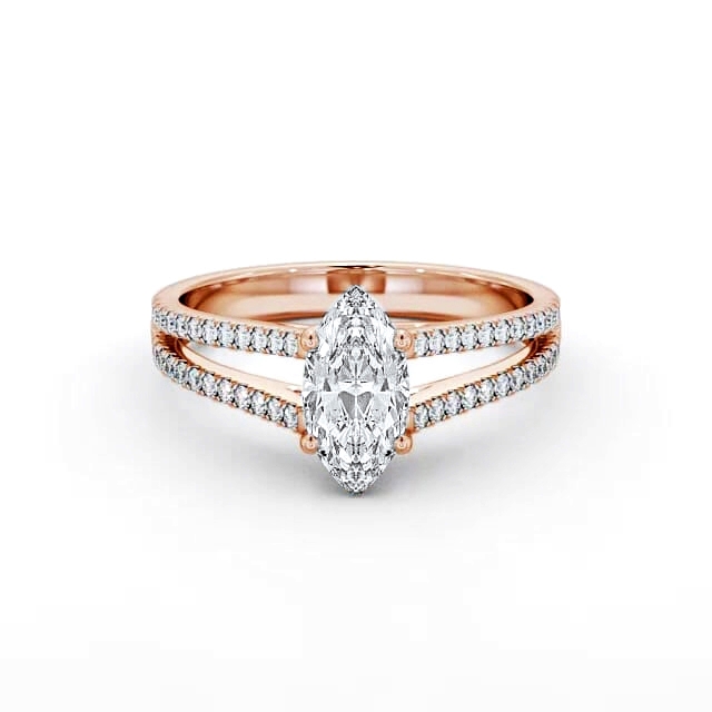 Marquise Diamond Split Band Engagement Ring 18K Rose Gold Solitaire | Nina