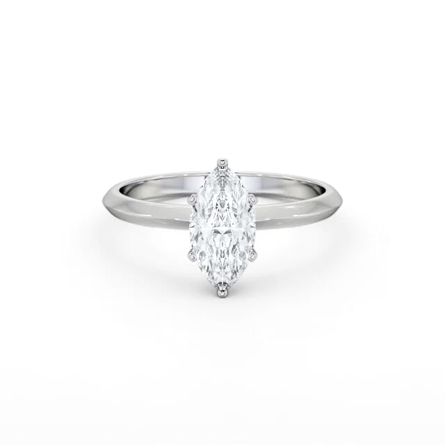Zahira diamond engagement ring with a six claw 18K White Gold setting. Sparkling from every angle, this eye-catching ring is ornate with a marquise shaped diamonds flawlessly set over a polished finish sleek knife edge band. This ring is available in a range of metal options and your choice of natural or lab grown diamonds. We offer a free design service for any customised changes that you may require.