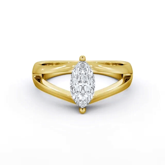 Marquise Diamond Split Band Engagement Ring 18K Yellow Gold Solitaire | Roselynn