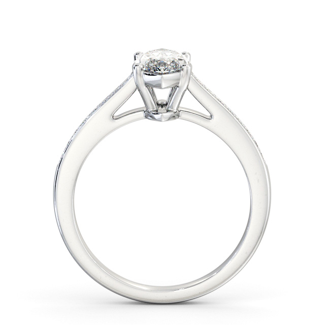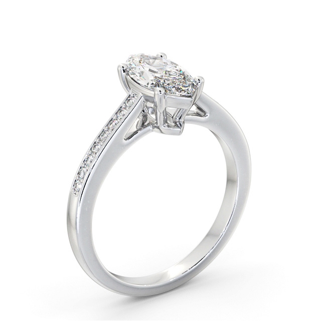 Tiaran diamond engagement ring with a four claw 9K White Gold setting. Superbly crafted, this ring showcases a marquise shaped diamond at the centre while small round diamonds shimmers the the highly polished band. Total diamond side stones weigh approximately 0.10ct with Clarity VS1 and Colour F. This ring is available in a range of metal options and your choice of natural or lab grown diamonds. We offer a free design service for any customised changes that you may require.