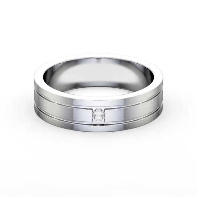 Mens 0.05ct Round Diamond Double Groove Wedding Ring 9K White Gold | Yasal