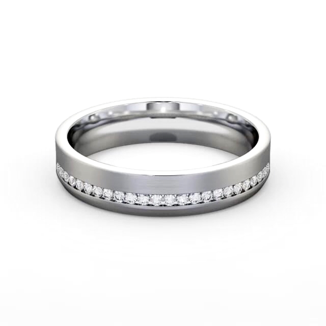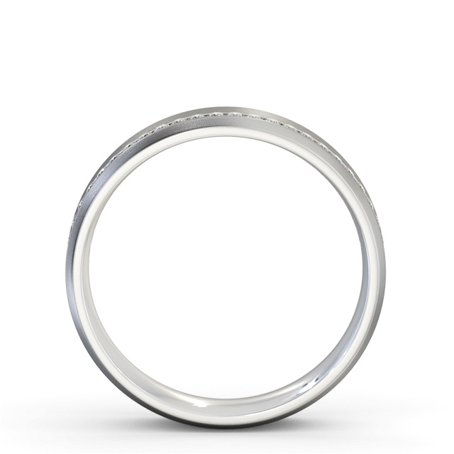 Sullivan men's diamond wedding ring in 18K White Gold. An excellent example of subtle elegance, this men's ring flaunts a sparkling array of round diamonds channel set on a brushed finished band. This ring is available in a range of widths, depths, and metal options. We offer a free design service for any customised changes that you may require.