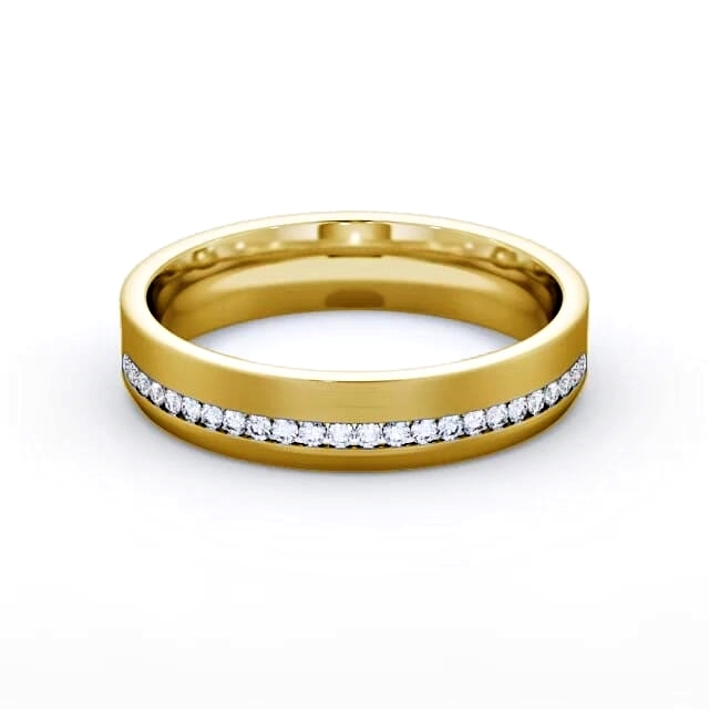 Sullivan men's diamond wedding ring in 18K Yellow Gold. An excellent example of subtle elegance, this men's ring flaunts a sparkling array of round diamonds channel set on a brushed finished band. This ring is available in a range of widths, depths, and metal options. We offer a free design service for any customised changes that you may require.