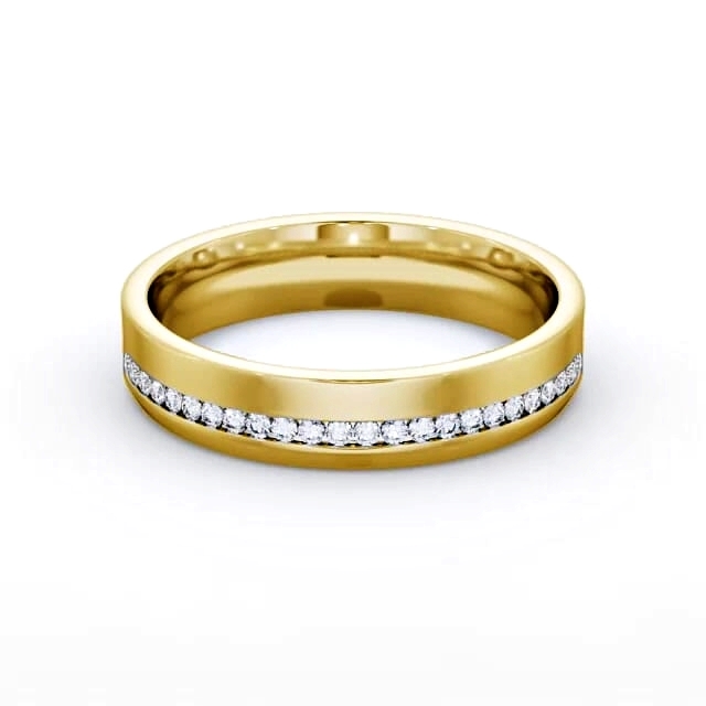 Sullivan men's diamond wedding ring in 9K Yellow Gold. An excellent example of subtle elegance, this men's ring flaunts a sparkling array of round diamonds channel set on a bright polished band. This ring is available in a range of widths, depths, and metal options. We offer a free design service for any customised changes that you may require.