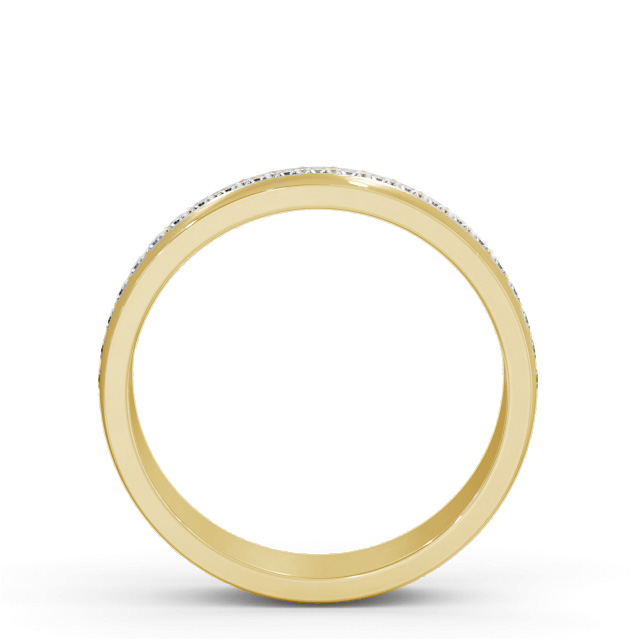 Maylene men's diamond wedding ring in 18K Yellow Gold. Sophisticated and masculine, this men's diamond wedding ring features a row of shimmering round diamonds set across the centre of the band. This ring is available in a range of widths, depths, and metal options. We offer a free design service for any customised changes that you may require.
