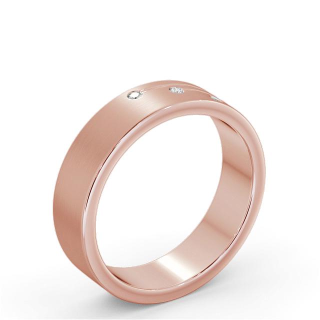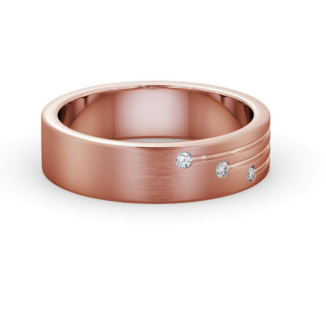 Arrison men's diamond 0.03 Carat wedding ring in 18K Rose Gold. An eye-catching design, this wedding ring features a trio of round shaped diamonds set on a brushed finished band. This ring is available in a range of widths, depths, and metal options. We offer a free design service for any customised changes that you may require.