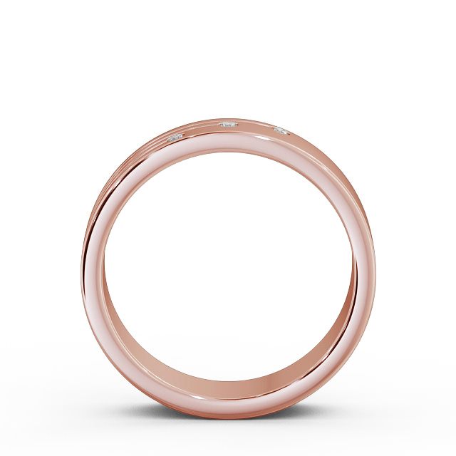 Arrison men's diamond 0.03 Carat wedding ring in 18K Rose Gold. An eye-catching design, this wedding ring features trio of round shaped diamonds set at the end of three prominent grooved channels. This ring is available in a range of widths, depths, and metal options. We offer a free design service for any customised changes that you may require.