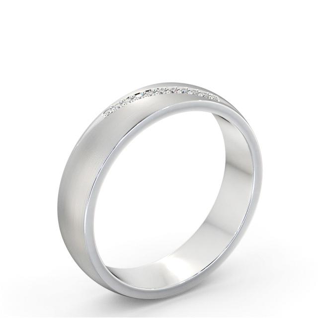 Brenley men's diamond 0.05 Carat wedding ring in 18K White Gold. Masculine and impressively confident, this men's wedding ring features a diagonal row of small diamonds on a brushed finished band. This ring is available in a range of metal options and your choice of natural or lab grown diamonds. We offer a free design service for any customised changes that you may require.