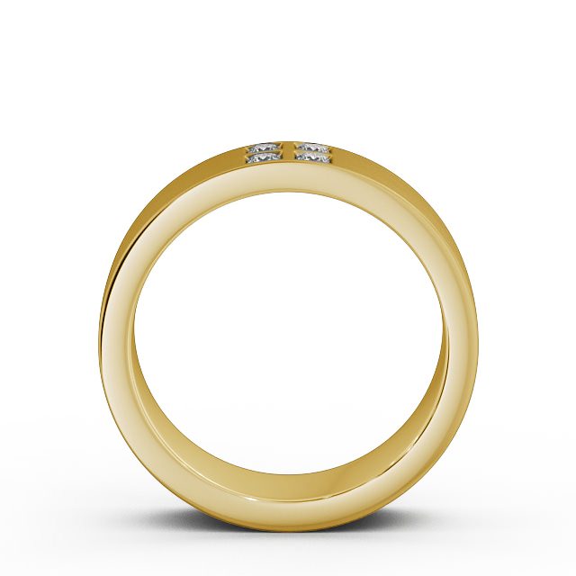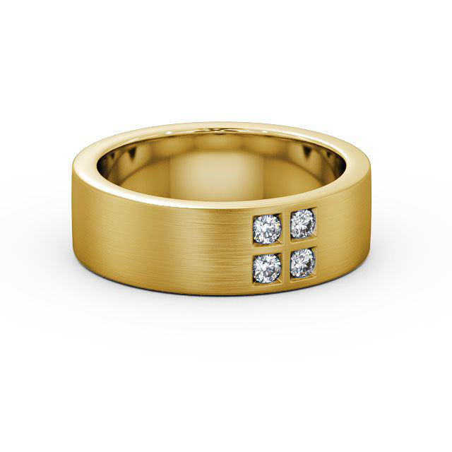 Zaylah (Matt) men's diamond 0.12 Carat wedding ring in 18K Yellow Gold. Stunning yet delicate, this wedding ring features four sparkling round diamonds settled in a square shaped design with matt finish. This ring is available in a range of widths, depths, and metal options. We offer a free design service for any customised changes that you may require.