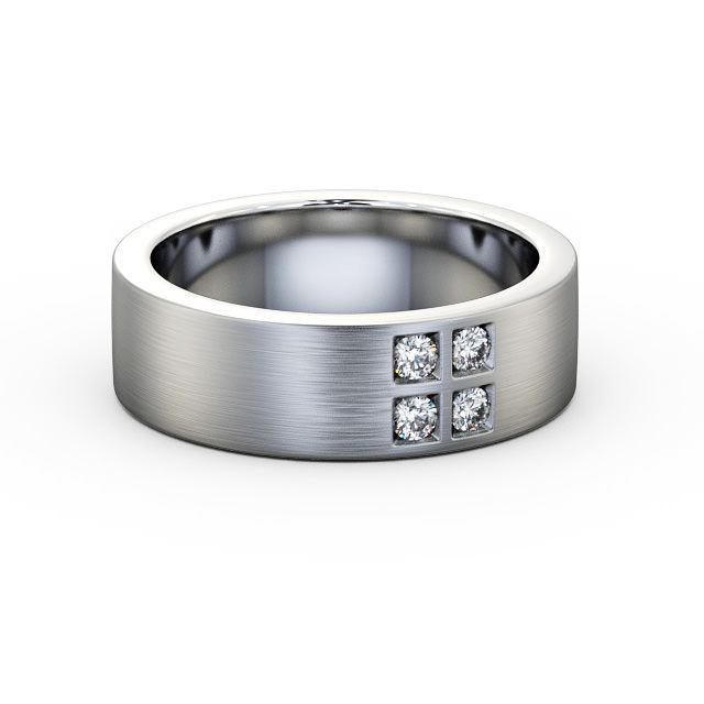 Zaylah (Matt) men's diamond 0.12 Carat wedding ring in Palladium. Stunning yet delicate, this wedding ring features four sparkling round diamonds settled in a square shaped design with matt finish. This ring is available in a range of widths, depths, and metal options. We offer a free design service for any customised changes that you may require.