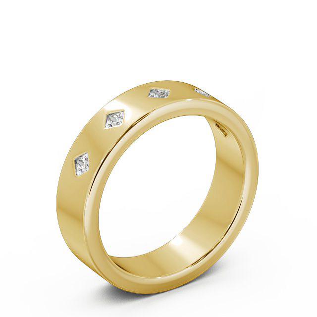 Vastol men's diamond 0.25 Carat wedding ring in 18K Yellow Gold. Classic and simple, this flat wedding ring features five princess cut diamonds set on a polished surface. This ring is available in a range of widths, depths and metal options with only natural diamonds. We offer a free design service for any customised changes that you may require.