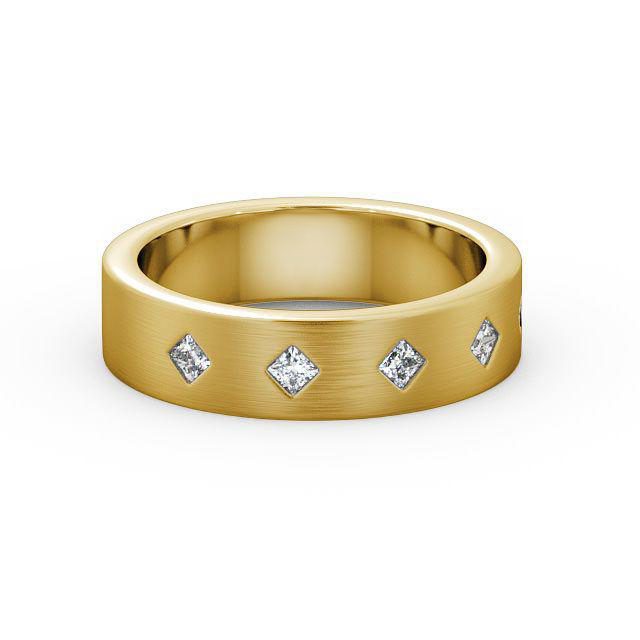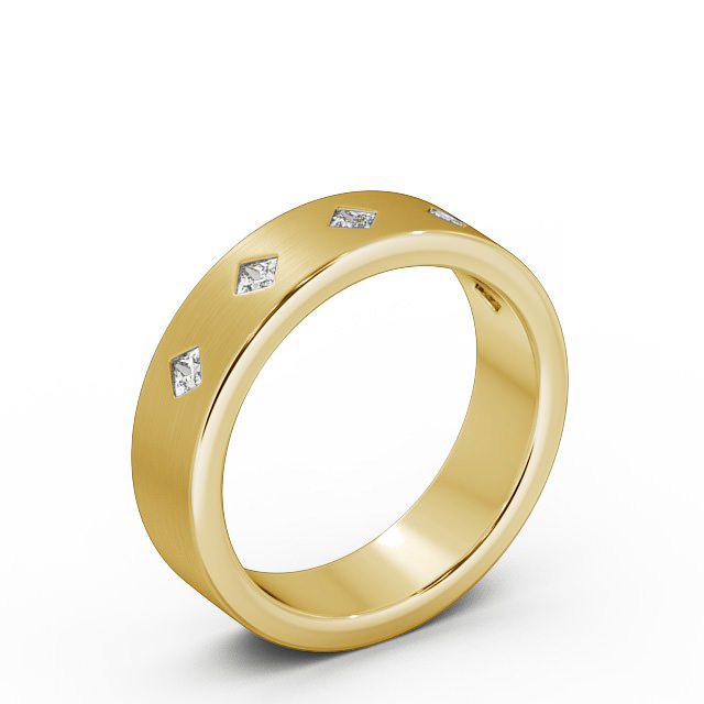 Vastol (Matt) men's diamond 0.25 Carat wedding ring in 9K Yellow Gold. Five dazzling princess shaped diamonds are placed on matt finish surface of this stunning wedding ring. This ring is available in a range of widths, depths and metal options with only natural diamonds. We offer a free design service for any customised changes that you may require.