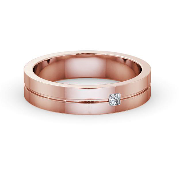 Mens Princess Diamond Single Groove Wedding Ring 18K Rose Gold | Benson