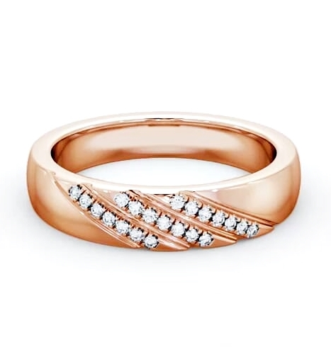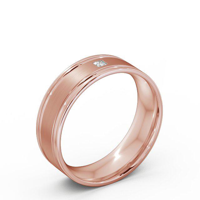 Eldon (Matt) men's diamond wedding ring in 18K Rose Gold. Designed to perfection, this flat court wedding ring features a single princess shaped diamond set on a rich matt finish centre, flanked by two polished grooves and rounded edges. This ring is available in a range of widths, depths, and metal options with only natural diamonds. We offer a free design service for any customised changes that you may require.