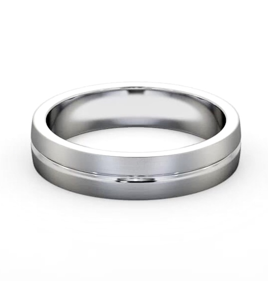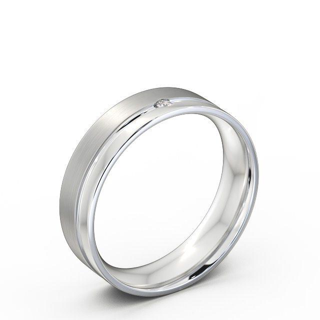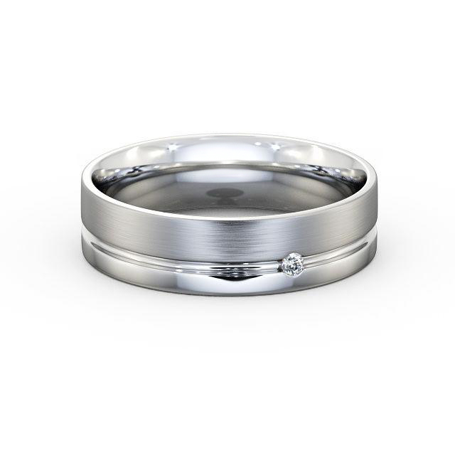 Kendal (Matt) men's diamond wedding ring in 18K White Gold. This flat court wedding ring showcases a matt and polished surface divided by a single round diamond accented grooved design. This ring is available in a range of widths, depths, and metal options. We offer a free design service for any customised changes that you may require.