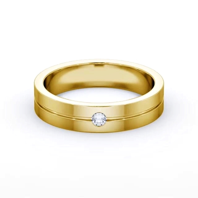 Mens Round Diamond Single Groove Wedding Ring 18K Yellow Gold | Kavan