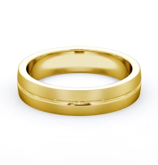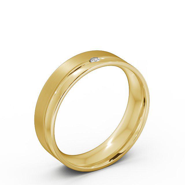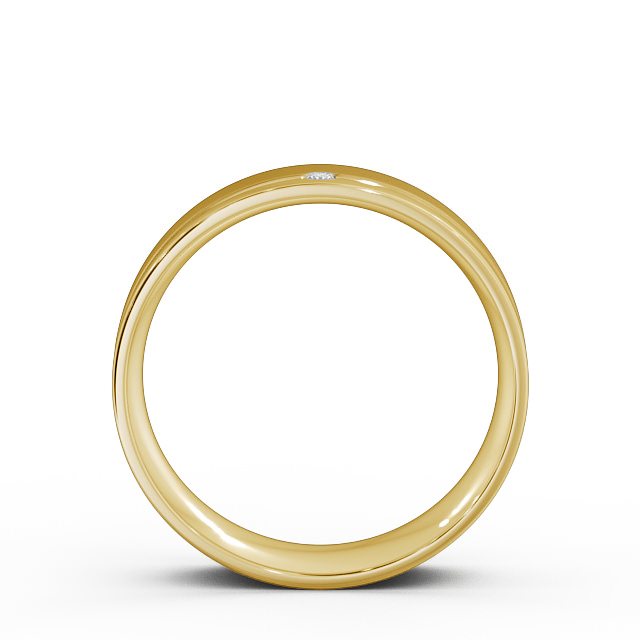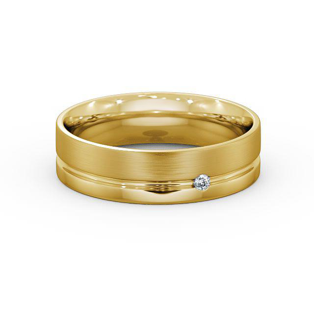 Kendal (Matt) men's diamond wedding ring in 18K Yellow Gold. This flat court wedding ring showcases a matt and polished surface divided by a single round diamond accented grooved design. This ring is available in a range of widths, depths, and metal options. We offer a free design service for any customised changes that you may require.