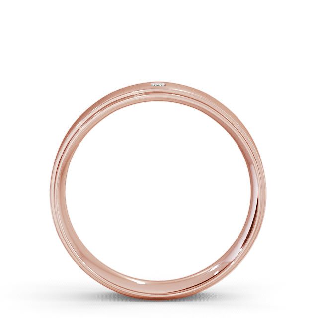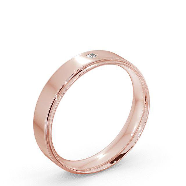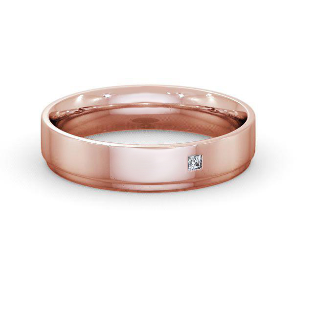 Orion men's diamond wedding ring in 9K Rose Gold. A classic flat court wedding ring with a single princess shaped diamond set on a polished surface along with a charming step down edge on one side. This ring is available in a range of widths, depths, and metal options. We offer a free design service for any customised changes that you may require.