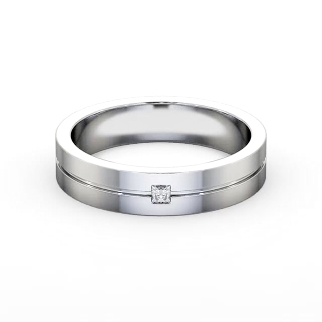 Mens Princess Diamond Single Groove Wedding Ring 9K White Gold | Benson