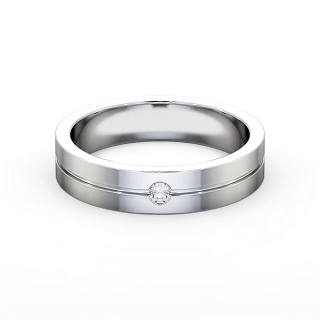 Mens Round Diamond Single Groove Wedding Ring 9K White Gold | Kavan