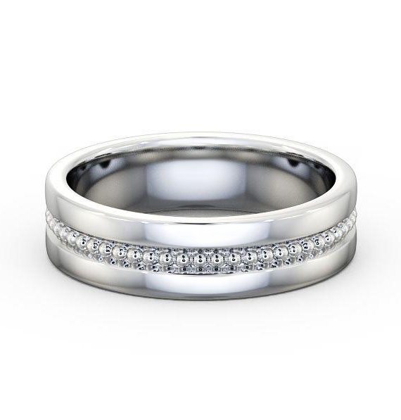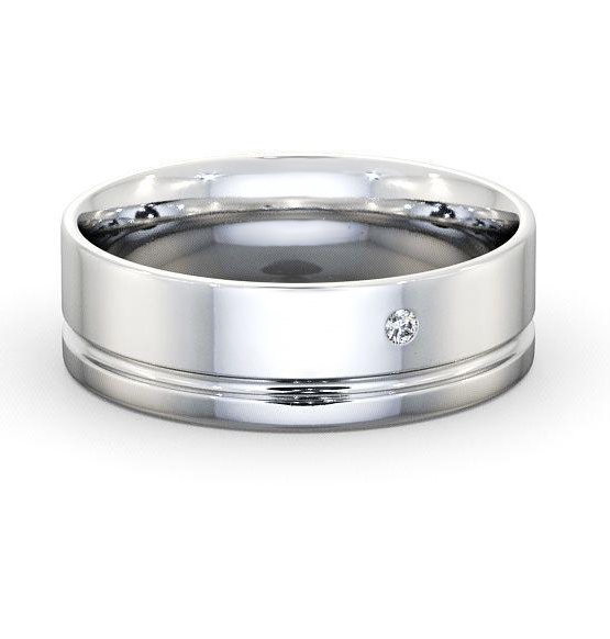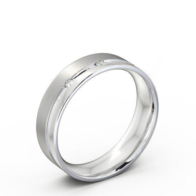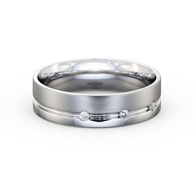 Sereen (Matt) men's diamond wedding ring in 9K White Gold. Modern in design, this flat wedding ring features three round diamonds set on single groove along with matt and a polished finish outer surface. Inside of the ring has court design. This ring is available in a range of widths, depths, and metal options. We offer a free design service for any customised changes that you may require.