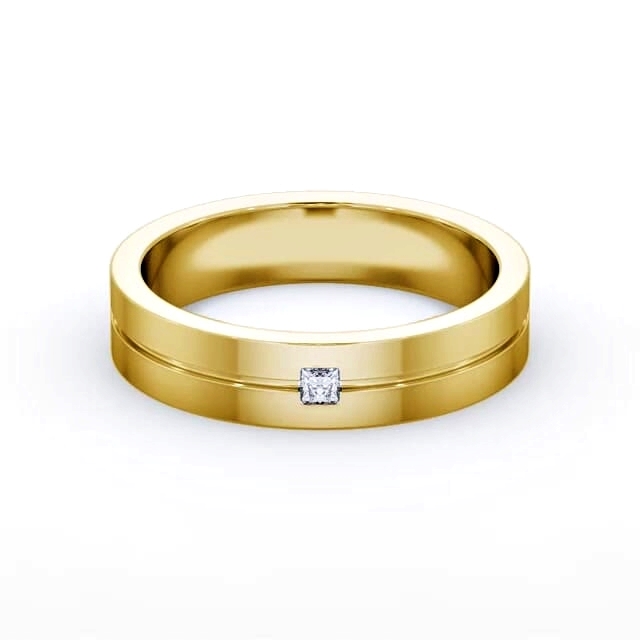Mens Princess Diamond Single Groove Wedding Ring 9K Yellow Gold | Benson