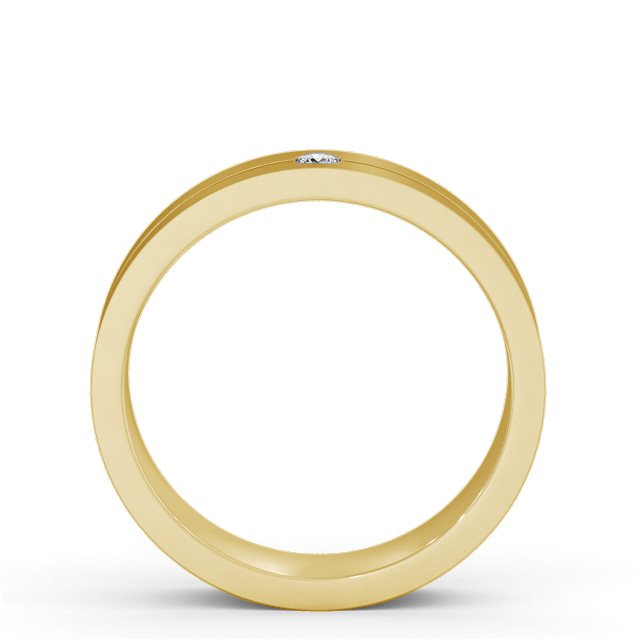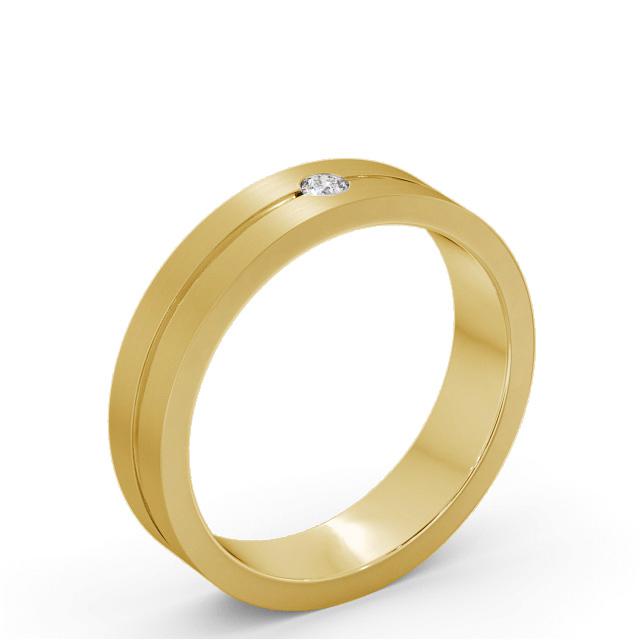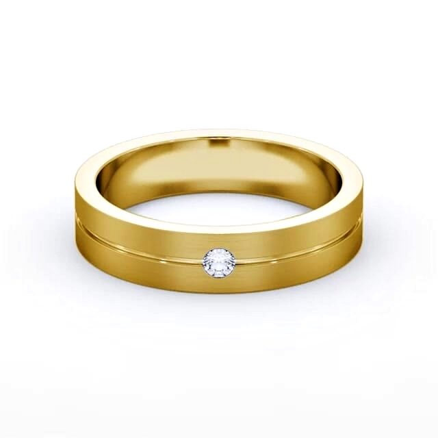 Kavan men's diamond wedding ring in 9K Yellow Gold. A single round diamond in middle, with a single groove that encircle the entire brushed finished band. This ring is available in a range of widths, depths, and metal options. We offer a free design service for any customised changes that you may require.