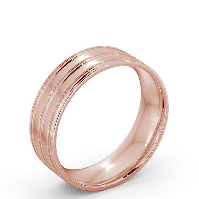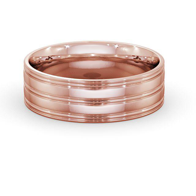 Mens Treble Grooved Flat Court Wedding Ring 18K Rose Gold | Eldana